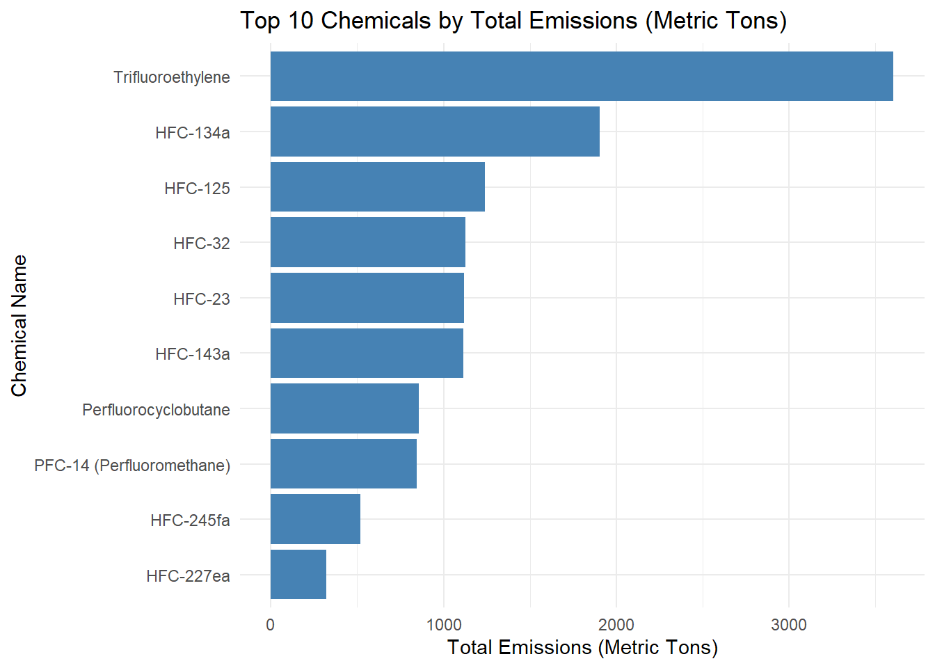 In the era of swift technological progress, the environmental impacts of electronics production have become increasingly significant. This research provides a comprehensive, data-driven examination of greenhouse gas emissions at the molecular level inside the electronics manufacturing sector. I performed a systematic analysis of individual fluorinated greenhouse gas (GHG) emissions across diverse chemicals, sites, and years utilizing facility-reported data from the US Environmental Protection Agency (EPA). The analysis identified the predominant chemical species and highlighted significant facility-level and temporal trends in the industry by focusing on reported emissions in metric tons. A limited number of chemicals contribute disproportionately to total emissions, as indicated by exploratory data analysis, whereas annual patterns reveal variability associated with facility operations and manufacturing cycles.